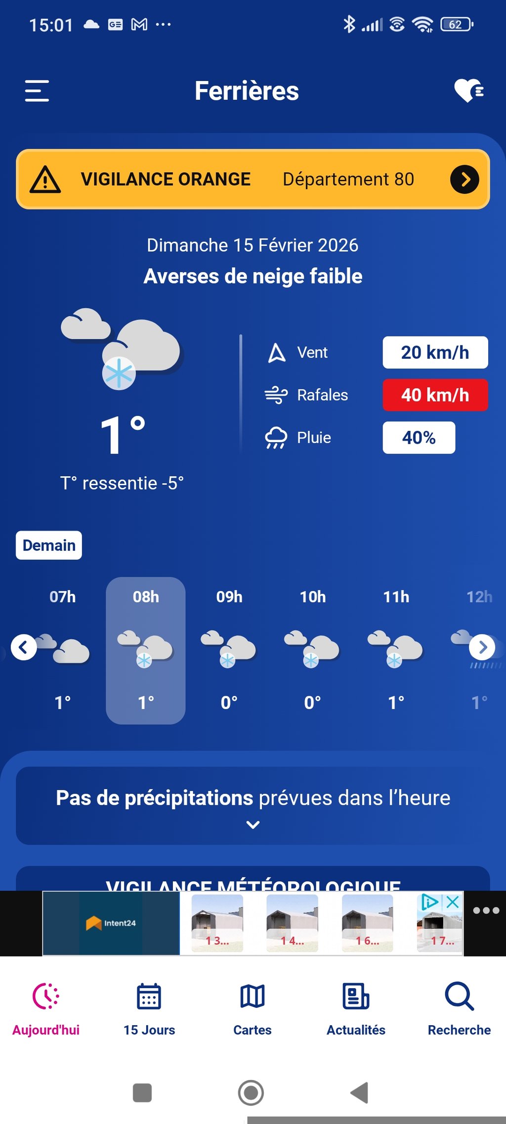 La Somme est placée en vigilance orange neige verglas demain, de 9h à 19h. Cumuls de neige de 3 à 6 cm attendus. Soyez vigilants lors de vos déplacements.