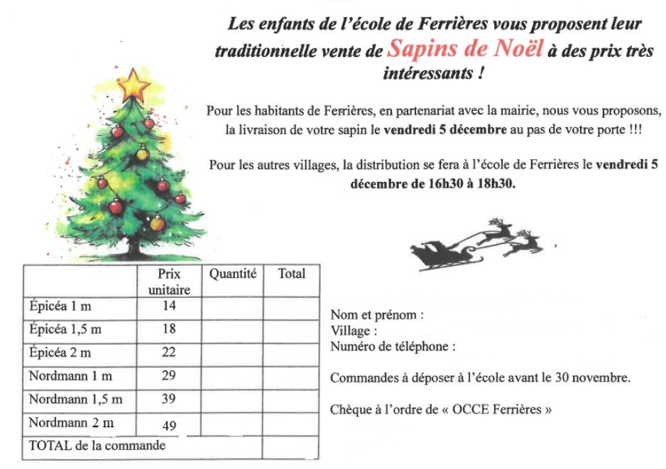 VENTE DE SAPINS AU PROFIT DE L'ÉCOLE JUSQU'AU 30 NOVEMBRE