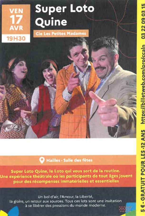 Dans le cadre de la saison culturelle Avre Luce Noye, un Super Loto Quine sera organisé à la salle des fêtes de Hailles le vendredi 17 avril 2026 à 19h30.